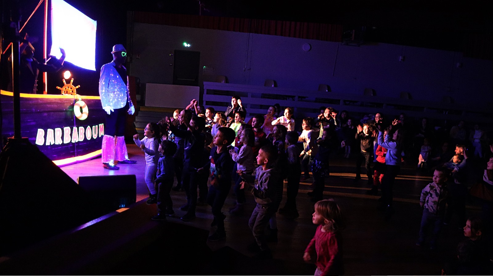 Le mercredi 6 décembre 2023, la Compagnie L’escargot de nuit a ravi les petits comme les grands avec son spectacle BarbaBoum, qui a rassemblé pas moins de 145 participants à la salle des fêtes de Chaussin ! Aux grès des vents, sur des musiques traditionnelles ou parfois actuelles, les enfants ont traversé les 5 continents. Ils ont appris à twister sur Les Beatles, à se déhancher sur les percussions africaines, à participer à une merveilleuse batucada… Jusqu’à l’apothéose : Le Moonwalk personnalisé de BarbaZik ! Encore un beau spectacle de fin d’année qui restera dans les mémoires !